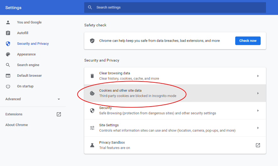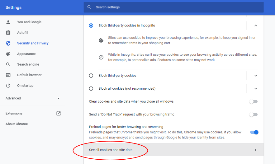 - In the "Cookies" section, click the "See all cookies and site data" button.